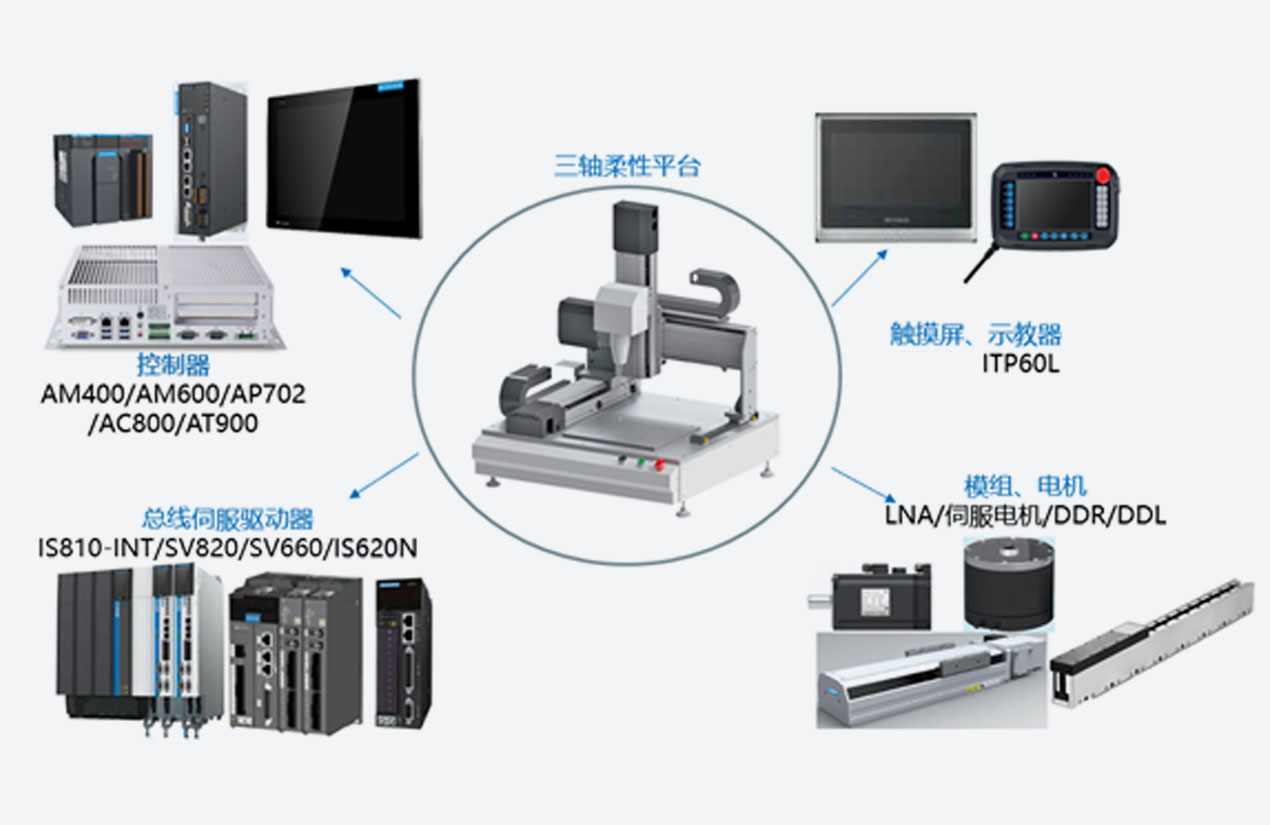 提供控制+驅動+機械模組+檢測光機電一體化整套方案,集成點涂膠、等離子清洗、鎖附、噴墨、焊接、碼垛、移栽、上下料等工藝,可通過示教、導圖的方式進行軌跡的和動作的編輯,適用于汽車電子非標自動化產線設備應用。針對龍門同步、CNC、視覺補償、與上位機數據交互封裝了功能塊,實現簡易編程。